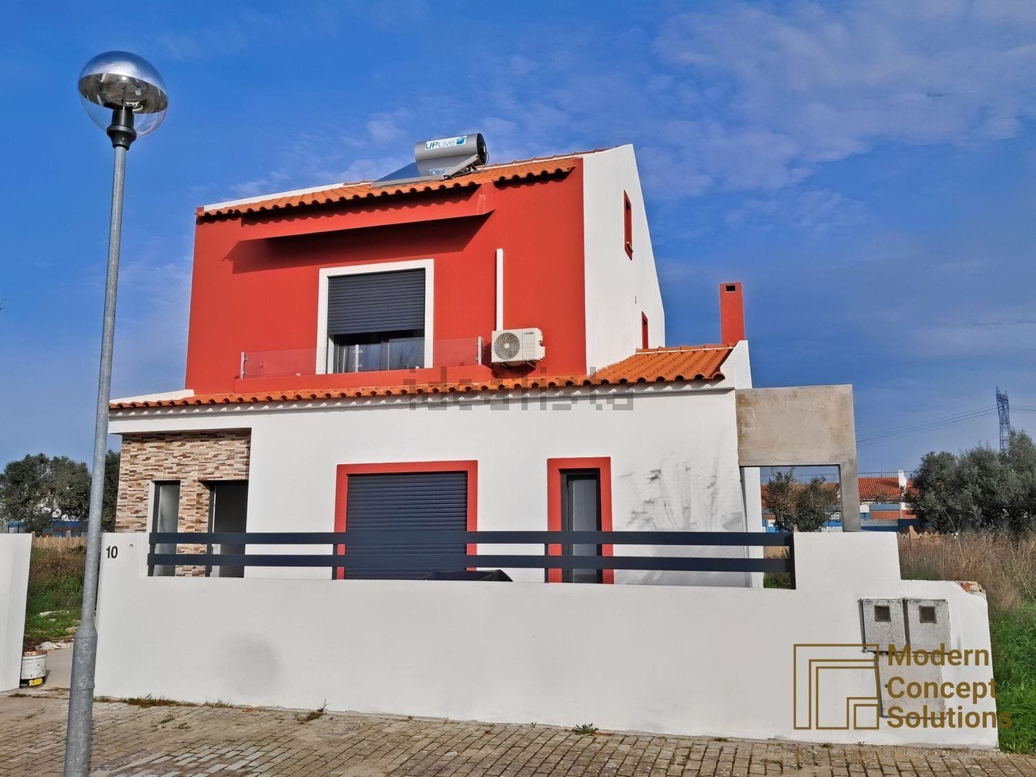 Moradia recente, de 2024, de arquitetura moderna, com excelente distribuição entre zona privada e zona de lazer/social.